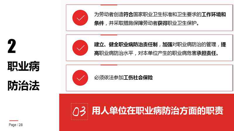 企业以劳动者为本,劳动者以健康为重,安全第一,让生活更美好!为了普及职业卫生知识,宣传职业病防治法,我国将每年4月的最后一周确定为职业病防治法宣传周,安全对于每个人,每个家庭,每个企业来说都是首要大事,保证安全才能让生产、生活稳步持续的发展。